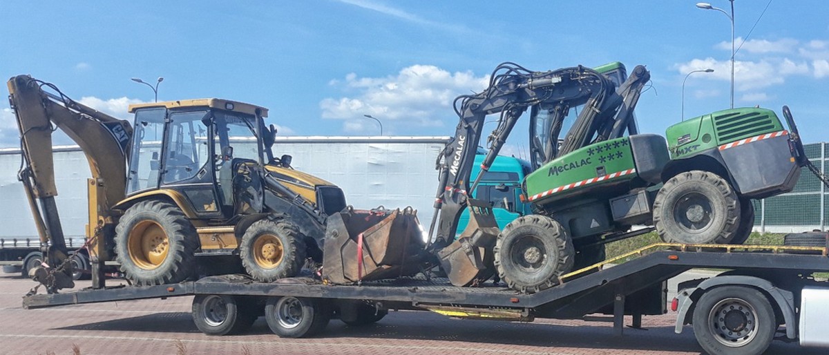 Koparki, spychacze i innego rodzaju maszyny budowlane.